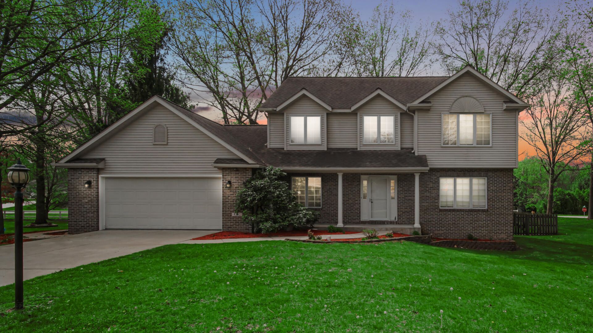 Welcome to Concord Vineyard - where charm, space, and function come together in a home! This two-story sits proudly on a spacious corner lot. Step inside to an inviting open-concept layout featuring a bright and airy kitchen that flows seamlessly into the living room, complete with a cozy fireplace - perfect for everyday living or entertaining. The main floor also offers a formal dining room, dedicated office space, and a convenient half bath. Upstairs, you'll find a spacious primary suite designed with comfort in mind, featuring a large en suite bath and a walk-in closet with laundry right where you need it most. Two additional bedrooms and a full bath round out the upper level. The clean, dry basement is a blank canvas ready for your vision - the possibilities are endless! Outside, enjoy a tiered deck ideal for relaxing or hosting, along with a two-car attached garage for convenience. This one checks all the boxes. Welcome home!